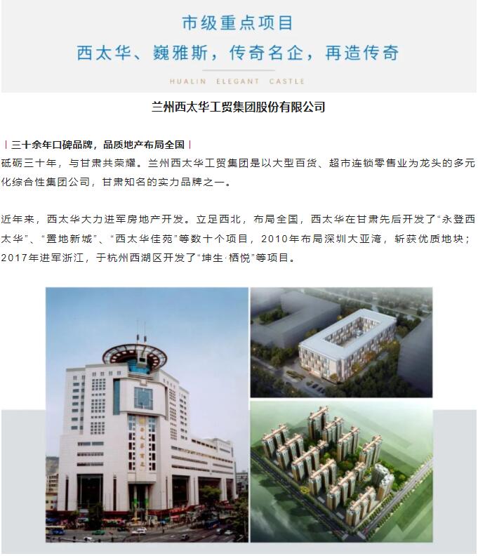 2016年7月7日與西太華工貿(mào)集團(tuán)合作成立甘肅樺琳房地產(chǎn)開(kāi)發(fā)有限公司開(kāi)發(fā)樺琳雅廷地產(chǎn)項(xiàng)目