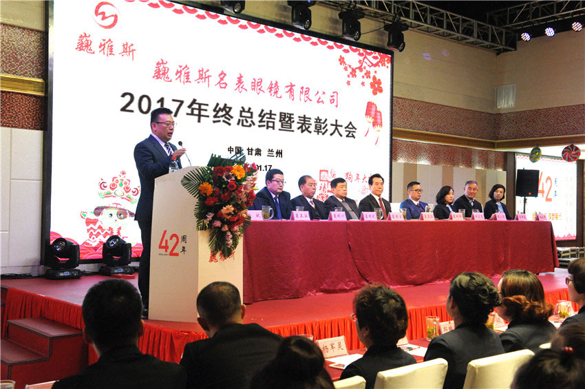 1月17日下午,巍雅斯名表眼鏡有限公司2017年度年終總結(jié)暨表彰大會在蘭州舉行。來自巍雅斯名表眼鏡有限公司各個部門,以及臨洮、蘭州、西安、銀川等公司及西寧分部的中高層管理人員、優(yōu)秀員工、一線員工代表等300余人出席了本屆年會。