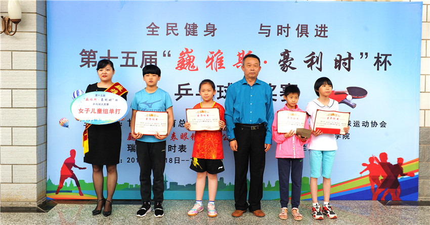 第十五屆“巍雅斯·豪利時(shí)”杯乒乓球大獎(jiǎng)賽少年兒童組比賽舉行頒獎(jiǎng)儀式
