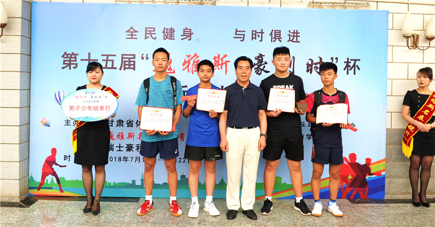 中國(guó)鐘表商會(huì)副會(huì)長(zhǎng)、甘肅省眼鏡協(xié)會(huì)會(huì)長(zhǎng)、甘肅省乒協(xié)副會(huì)長(zhǎng)、巍雅斯名表眼鏡有限公司董事長(zhǎng)裴正江、甘肅省乒乓球運(yùn)動(dòng)協(xié)會(huì)會(huì)長(zhǎng)韓力、原蘭州城市學(xué)院院長(zhǎng)王汝鋒、巍雅斯名表眼鏡有限公司副總裁裴明宏、甘肅省乒乓球運(yùn)動(dòng)協(xié)會(huì)秘書(shū)長(zhǎng)宋建農(nóng)、裁委會(huì)主任石振民、夲次大獎(jiǎng)賽裁判長(zhǎng)關(guān)欣出席頒獎(jiǎng)儀式并為獲獎(jiǎng)代表隊(duì)和運(yùn)動(dòng)員頒獎(jiǎng)。