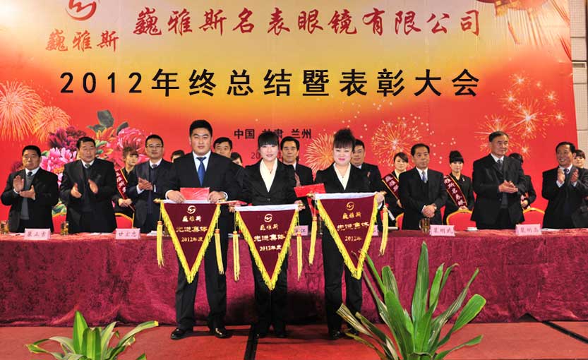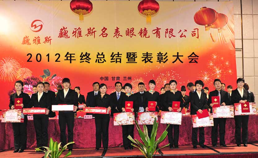 2013年1月6日下午,巍雅斯名表眼鏡有限公司2012年度年終總結(jié)暨表彰大會在蘭州隆重舉行。來自臨洮公司、蘭州公司、銀川公司、西安公司、西寧分部、拉薩分部及各個(gè)地市的員工代表及管理人員總計(jì)320余人參加會議。