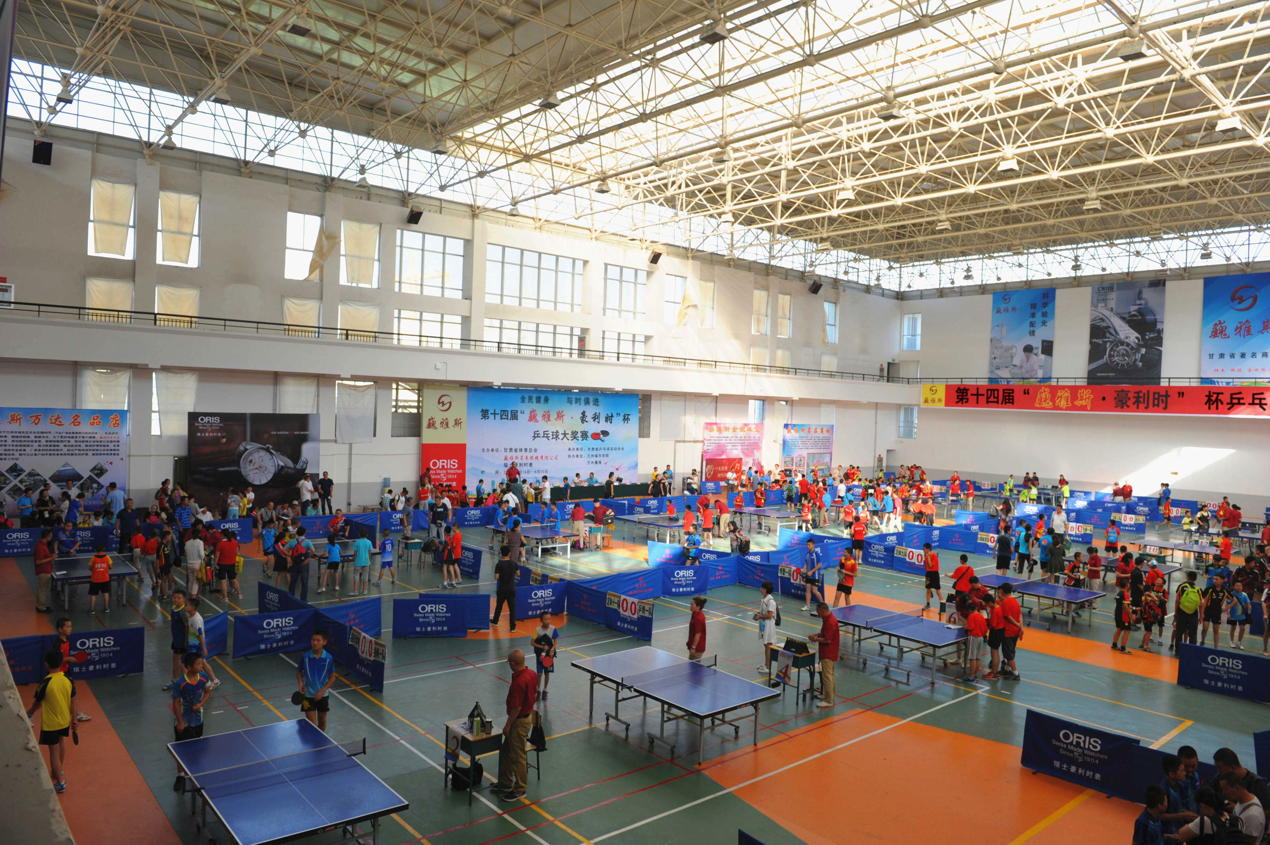 8月16日上午,由巍雅斯名表眼鏡有限公司、瑞士豪利時表主辦,甘肅省乒乓球協(xié)會承辦,蘭州城市學院、蘭州晨報協(xié)辦的“全民健身,與時俱進”第十四屆“巍雅斯?豪利時”杯乒乓球大獎賽(蘭州站)在蘭州城市學院培黎校區(qū)體育館拉開帷幕。來自90個俱樂部,250多支代表隊的1158名運動員,參加所在組別的團體和單打比賽,在享受乒乓快樂的同時,向 110多個獎項展開激烈角逐,向高達近8000元的冠軍大獎發(fā)起沖擊。
