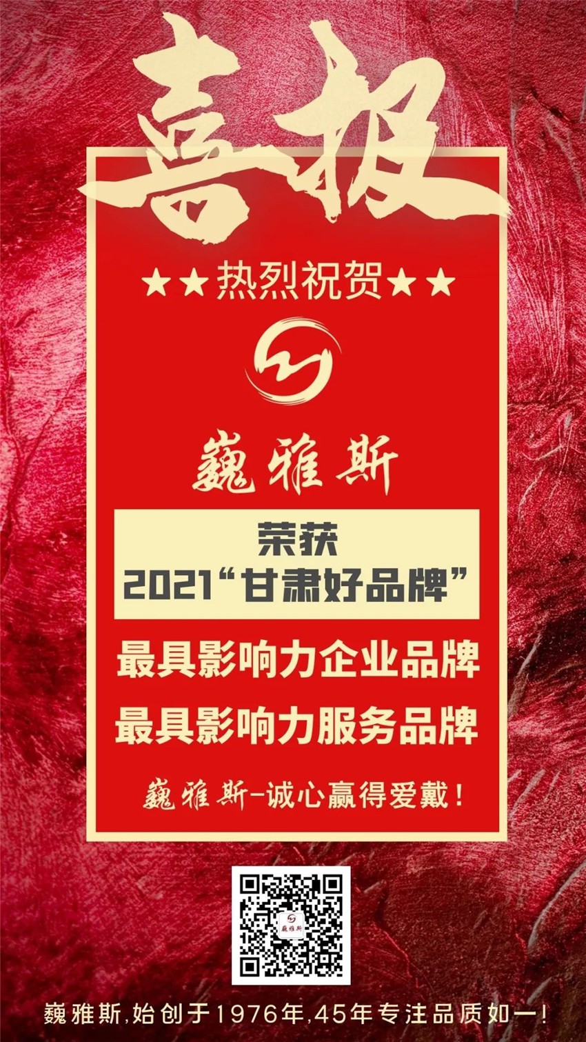 巍雅斯憑借過(guò)硬實(shí)力,在本次活動(dòng)中繼續(xù)被評(píng)為“最具影響力企業(yè)品牌”,同時(shí)也被評(píng)為“最具影響力服務(wù)品牌”。是繼2018年第一屆甘肅好品牌評(píng)為“最具影響力企業(yè)品牌”后,再次獲得甘肅好品牌兩項(xiàng)榮譽(yù)稱(chēng)號(hào)。