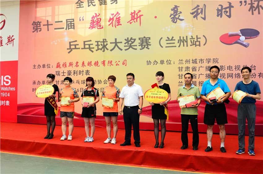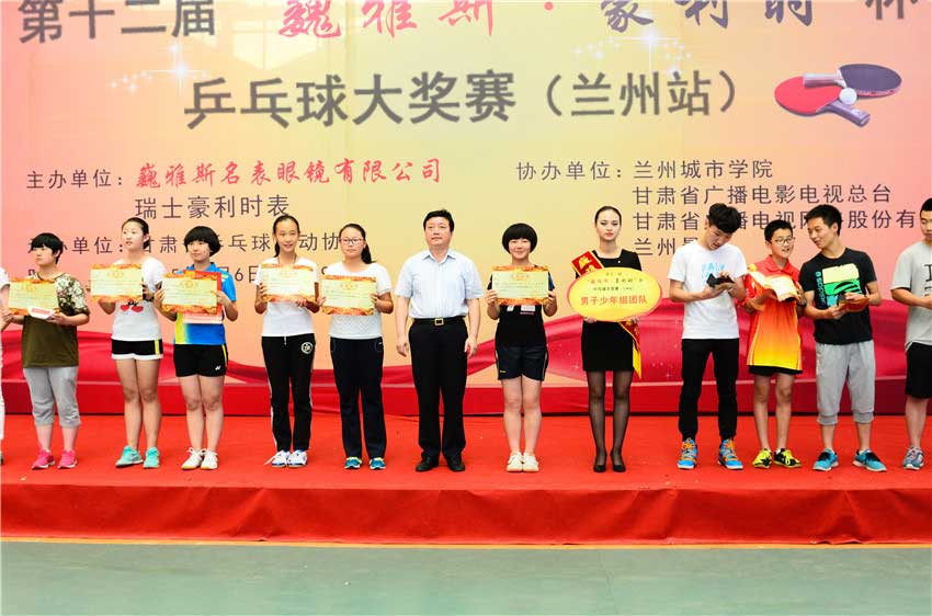 經(jīng)過近5天緊張激烈的比賽,第十二屆“巍雅斯·豪利時”杯乒乓球大獎賽(蘭州站)比賽于8月9日圓滿落幕。多名省級領(lǐng)導(dǎo)和巍雅斯名表眼鏡有限公司董事長、總裁等嘉賓出席閉幕式,并為獲獎運(yùn)動員頒獎。