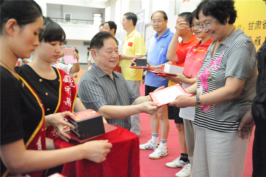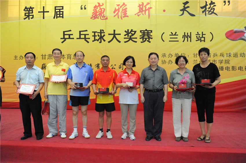 經(jīng)過(guò)5天的激烈角逐,由甘肅省體育總會(huì)、巍雅斯名表眼鏡有限公司和瑞士天梭表主辦,甘肅省乒乓球協(xié)會(huì)承辦,蘭州城市學(xué)院、甘肅省廣播電影電視總臺(tái)、蘭州晨報(bào)協(xié)辦的,全民健身與時(shí)俱進(jìn),第十屆“巍雅斯?天梭”杯乒乓球大獎(jiǎng)賽(蘭州站),于8月18日在蘭州城市學(xué)院培黎體育館落下帷幕。國(guó)際乒乓球聯(lián)合會(huì)終身名譽(yù)主席、原國(guó)家體育運(yùn)動(dòng)委員會(huì)副主任徐寅生專程從上海趕來(lái),甘肅省政協(xié)副主席張景輝、蘭州軍區(qū)政治部副主任王文杰、原甘肅省十屆人大副主任吳碧蓮、原蘭州軍區(qū)副參謀長(zhǎng)楊旭華、原蘭州軍區(qū)空軍副參謀長(zhǎng)欒連續(xù)、甘肅省體育局局長(zhǎng)楊衛(wèi)、蘭州城市學(xué)院院長(zhǎng)王汝峰、中國(guó)鐘表商會(huì)副會(huì)長(zhǎng)、甘肅省眼鏡協(xié)會(huì)會(huì)長(zhǎng)、甘肅省乒協(xié)副主席、巍雅斯名表眼鏡有限公司董事長(zhǎng)裴正江、甘肅省司法廳巡視員、甘肅省乒協(xié)副主席張克年、甘肅省乒乓球運(yùn)動(dòng)協(xié)會(huì)主席穆端敏、甘肅省體育總會(huì)常務(wù)副秘書(shū)長(zhǎng)丁思林等領(lǐng)導(dǎo)出席了閉幕儀式,并為運(yùn)動(dòng)員頒獎(jiǎng)。原蘭州軍區(qū)副參謀長(zhǎng)楊旭華致閉幕詞,宣布本屆大獎(jiǎng)賽閉幕。 第十屆“巍雅斯·天梭”杯大獎(jiǎng)賽單打比賽成績(jī)