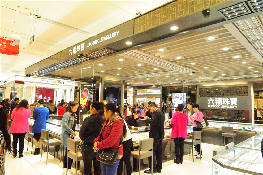 六福珠寶位于萬達百貨一樓扶梯旁,產品涵蓋黃金、鉆石、K金等品類,憑借設計新穎,質量上乘的特點,為顧客提供物美價優(yōu)的產品和服務。