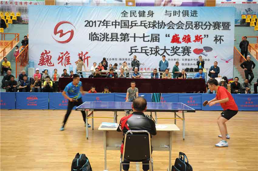 2017年中國乒乓球協(xié)會會員積分賽暨第十七屆臨洮縣“巍雅斯”杯乒乓球大獎賽,經(jīng)過三天緊張激烈的角逐,各個組別的男女團體和單打別名次全部產(chǎn)生。9月24日下午,進行了本次比賽極為精彩的成年男子組冠亞軍決賽,并舉行了頒獎儀式。