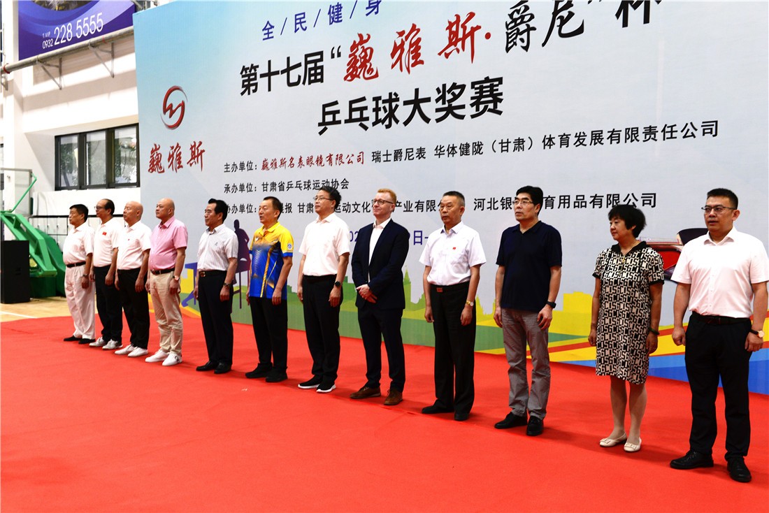 中國鐘表商分會副會長、甘肅省眼鏡協(xié)會會長、甘肅省乒乓球運動協(xié)會副會長、巍雅斯名表眼鏡有限公司董事長裴正江,瑞士爵尼手表全球總裁帕特里克.丹尼爾.薩拉丁,瑞士爵尼遠(yuǎn)東有限公司董事長兼總裁陳道信及有關(guān)領(lǐng)導(dǎo)、運動員、裁判員、教練員、工作人員一起參加了簡樸但氣氛熱烈的大獎賽開幕式。