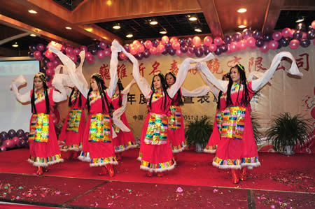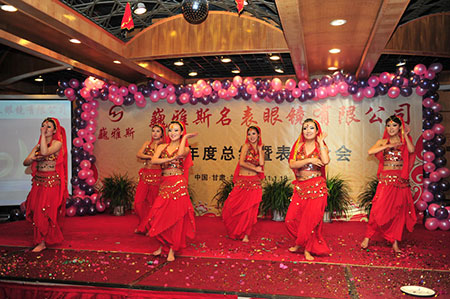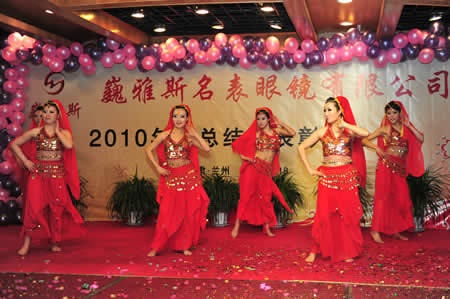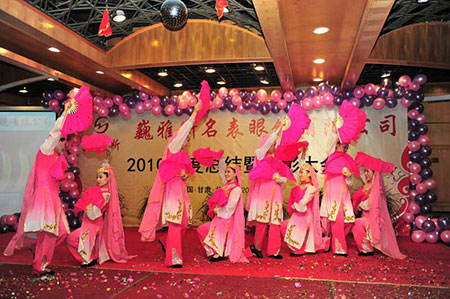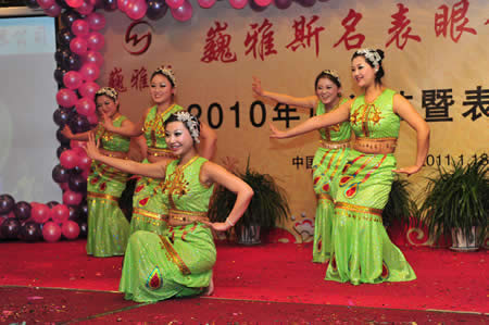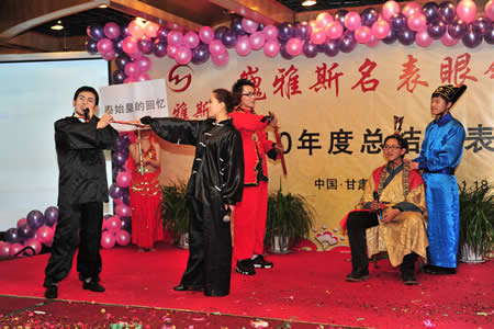 2011年1月18日,巍雅斯名表眼鏡有限公司2010年度總結(jié)暨表彰先進(jìn)大會(huì)在蘭州錦江陽(yáng)光酒店舉行,來(lái)自西安、銀川、西寧、拉薩、天水等地的部分員工240多人歡聚一堂,共敘友誼、共商發(fā)展,會(huì)餐后舉辦了豐富多彩的聯(lián)歡晚會(huì)。前來(lái)走訪的以經(jīng)營(yíng)古馳、迪奧、BOSS、阿瑪尼等高端眼鏡品牌為主的意大利霞飛諾集團(tuán)中國(guó)區(qū)總裁雅各布(Jacopo)先生及日本尼康鏡片西北區(qū)業(yè)務(wù)經(jīng)理張海青先生也興致勃勃的參加了晚宴和聯(lián)歡晚會(huì)。
