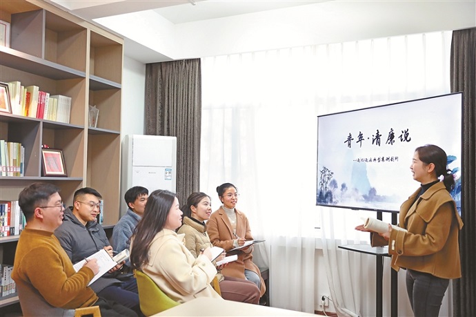福建省南平市建陽(yáng)區(qū)紀(jì)委監(jiān)委加強(qiáng)對(duì)年輕干部的教育監(jiān)督管理,根據(jù)年輕干部特點(diǎn),選取相關(guān)違紀(jì)違法典型案例進(jìn)行剖析,引導(dǎo)年輕干部引以為戒,自覺(jué)筑牢廉潔防線。圖為該區(qū)紀(jì)委監(jiān)委年輕干部在“青年·清廉說(shuō)”學(xué)習(xí)沙龍上交流心得體會(huì)。黃毓婕 攝