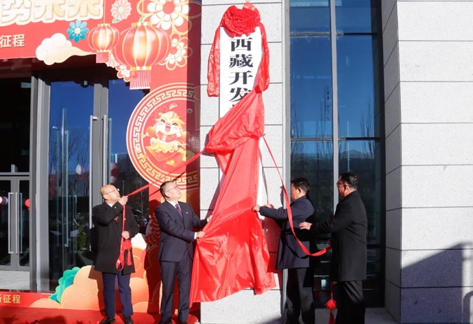 上午10點,祁騰武、劉剛、羅布次仁、胡順成、陳焱罡、溫勇、鄧強、尼瑪共同為西藏開投集團新辦公樓揭牌。