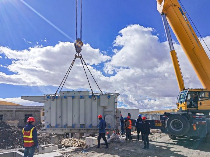 色尼區(qū)達(dá)嘎普獨(dú)立儲(chǔ)能項(xiàng)目svg預(yù)制艙吊裝。吳昊澄 攝