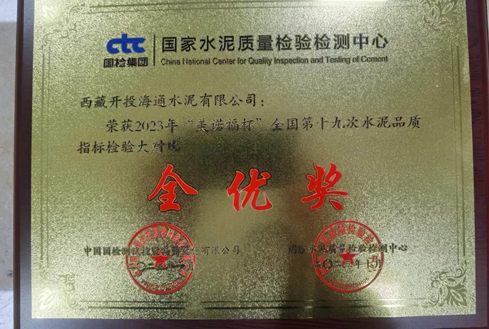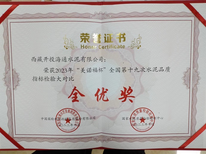 西藏開投海通水泥公司喜獲全國(guó)水泥檢驗(yàn)大對(duì)比“全優(yōu)獎(jiǎng)”