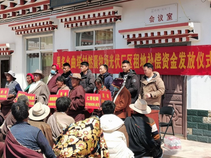 4月11日,金上光伏公司協(xié)同芒康昂多鄉(xiāng)政府舉行金上昌都貢覺拉妥700兆瓦光伏發(fā)電項(xiàng)目光伏陣列區(qū)租賃費(fèi)用發(fā)放儀式。此次發(fā)放儀式涉及昂多鄉(xiāng)曲塔村群眾90戶,共計(jì)費(fèi)用(2023年-2028年)約1468萬元。