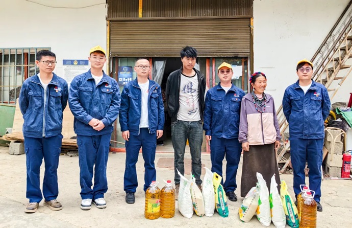 活動現(xiàn)場,覺巴黨支部同當(dāng)?shù)卣浜?,為曲登鄉(xiāng)兩戶困難群眾送上大米、面粉、食用油等生活物資,詳細(xì)了解他們身體狀況、家庭情況,并鼓勵他們堅定信心、努力向上生活。