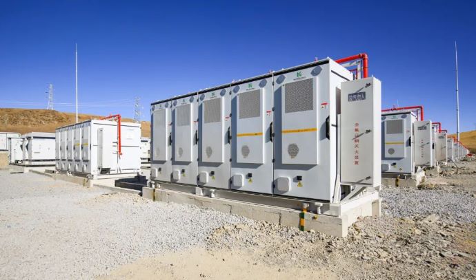 西藏開投色尼區(qū)達(dá)嘎普獨(dú)立構(gòu)網(wǎng)型儲能電站。