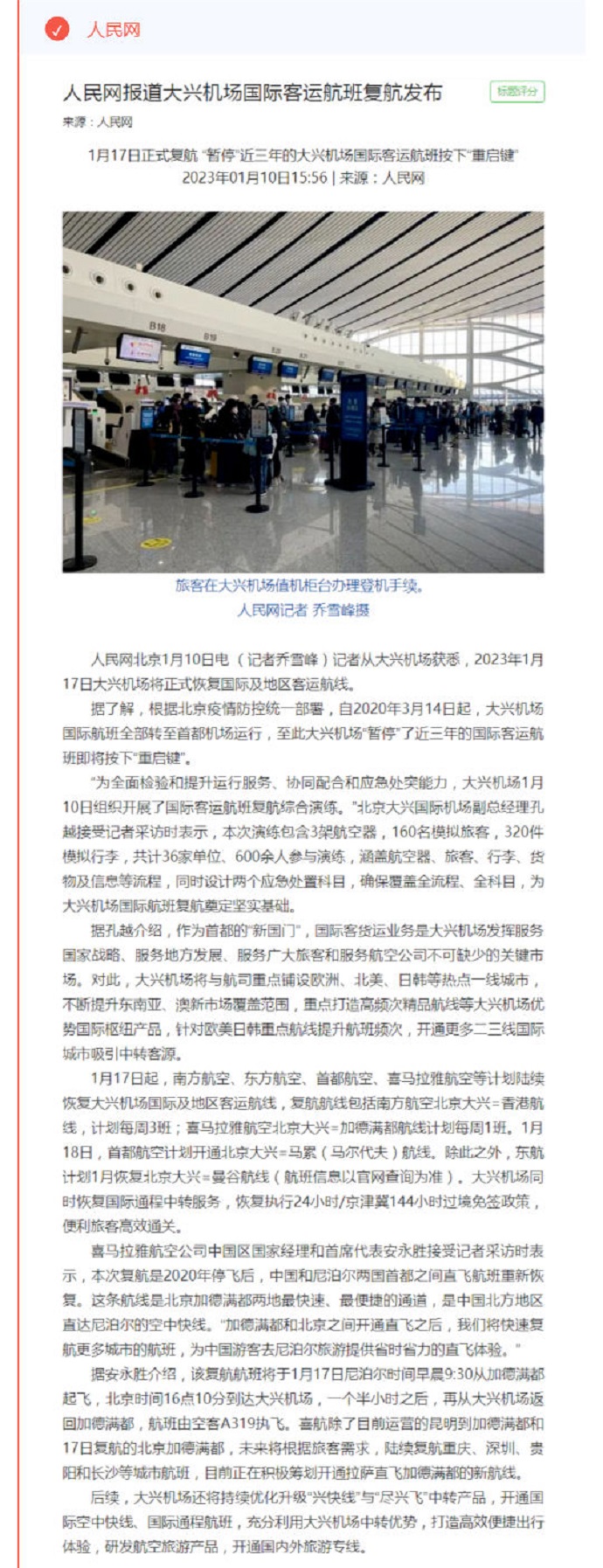 人民網(wǎng)報道大興機場國際客運航班復航發(fā)布會