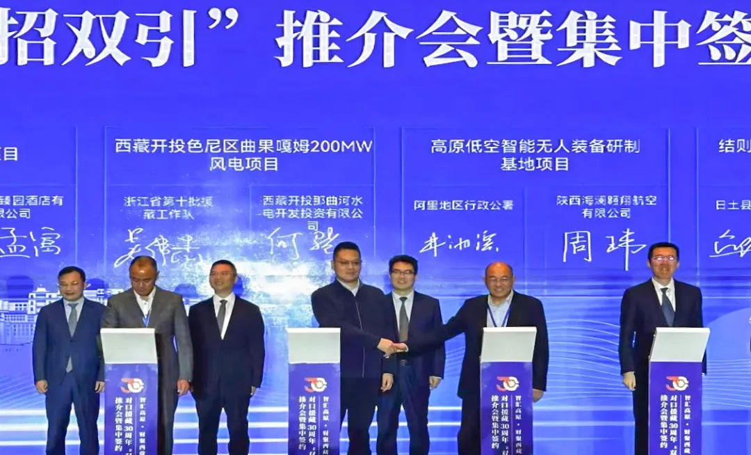 為貫徹落實(shí)自治區(qū)黨委政府決策部署,近日,區(qū)黨委組織部、自治區(qū)投資促進(jìn)局在拉薩市香格里拉大酒店宴會(huì)廳舉行對(duì)口援藏30周年“雙招雙引”推介會(huì)暨集中簽約儀式。活動(dòng)由自治區(qū)人民政府副主席張利主持,自治區(qū)黨委常委、組織部部長(zhǎng)賴蛟致辭,那曲市政府辦、發(fā)展改革委、投資促進(jìn)局及相關(guān)領(lǐng)導(dǎo)出席。本次簽約儀式涉及清潔能源、特色農(nóng)牧、綠色工業(yè)、現(xiàn)代服務(wù)、教育、高原生態(tài)、醫(yī)藥、農(nóng)牧等幾大方面,將為西藏經(jīng)濟(jì)社會(huì)高質(zhì)量發(fā)展注入新的活力。西藏開(kāi)投集團(tuán)黨委書(shū)記、董事長(zhǎng)祁騰武,那曲河水電公司相關(guān)人員參加簽約儀式。