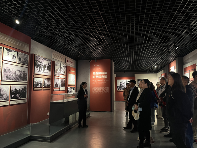 在講解員引導(dǎo)下,大家參觀了由“一生奉獻給黨的事業(yè)”“老西藏精神的光輝典范”“紅色基因代代相傳”三個單元組成的陳列展,認(rèn)真聆聽了“從參加革命到解放西南、和平解放時期、在執(zhí)行協(xié)議的八年歲月、重返西藏、永不褪色的老西藏精神”等反映譚冠三將軍一生和西藏各族各界人士傳承老西藏精神的故事。