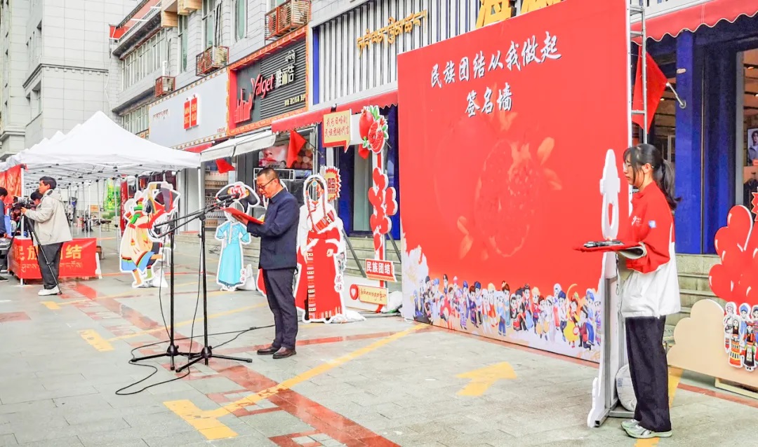 (圖為“民族團(tuán)結(jié)從我做起”主題宣傳活動現(xiàn)場。蔣雨伶 攝)