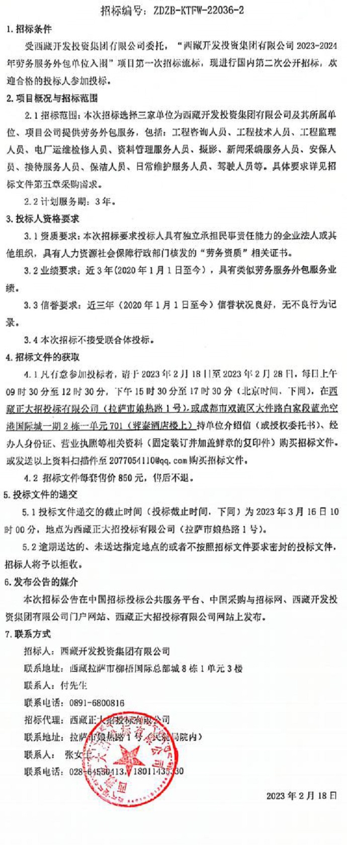 西藏開發(fā)投資集團有限公司2023-2024年勞務服務外包單位入圍招標公告