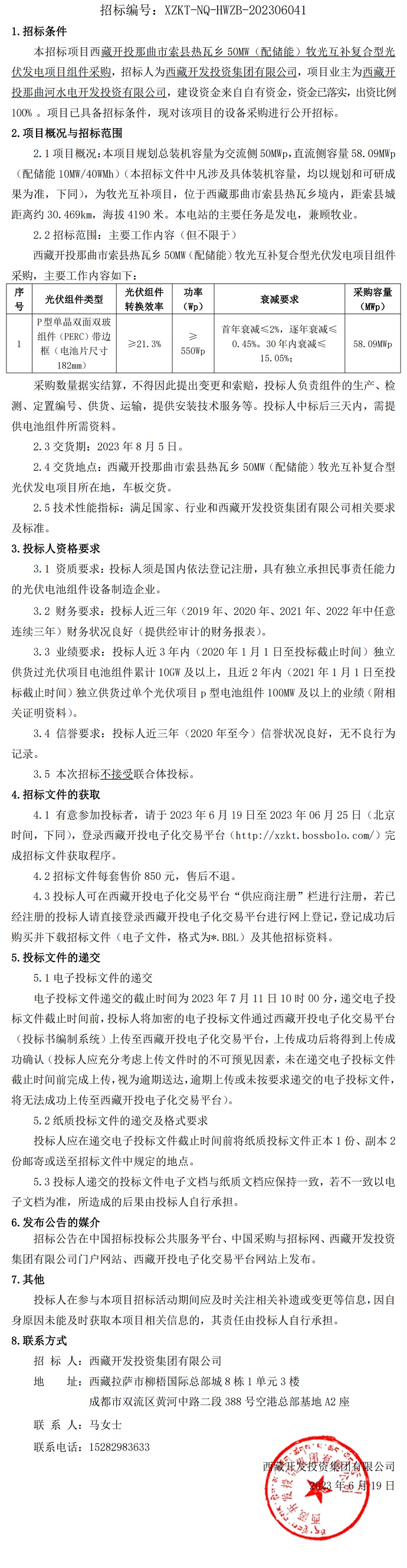 西藏開投那曲市索縣熱瓦鄉(xiāng)50MW(配儲能)牧光互補復(fù)合型光伏發(fā)電項目光伏組件采購招標公告