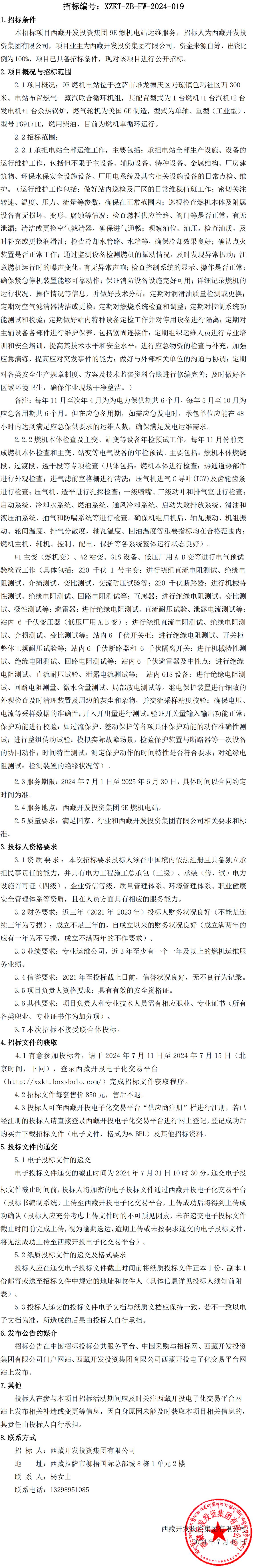 西藏開發(fā)投資集團(tuán)9E燃機(jī)電站運(yùn)維服務(wù)招標(biāo)公告