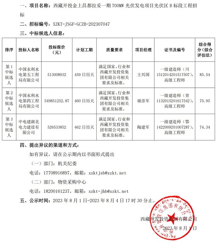 中標(biāo)候選人公示